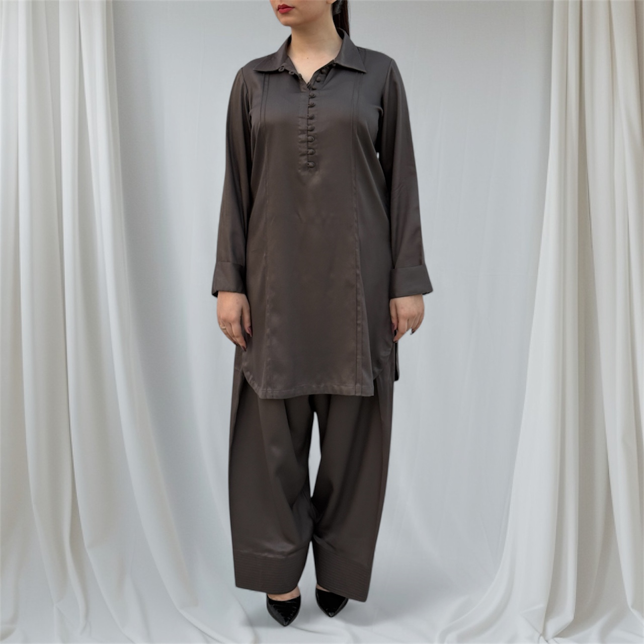 Fit: Round bottom mid length kurta with traditional shalwar.