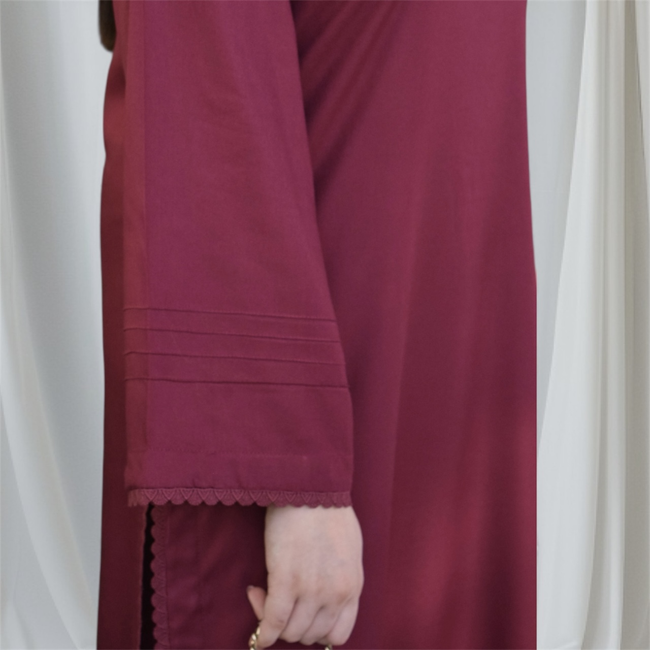 Design: Plain straight kurta with pintuck sleeves and subtle lace edging.